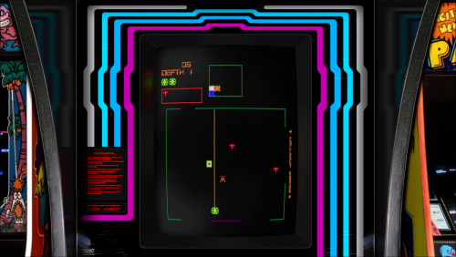 Here's a realistic Arcade Bezel for the game Space Dungeon using the MegaBezel Reflective Shader for Retroarch.