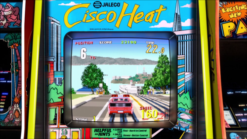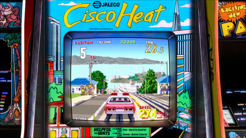 Here's a realistic Arcade Bezel for the game Cisco Heat using the MegaBezel Reflective Shader for Retroarch.