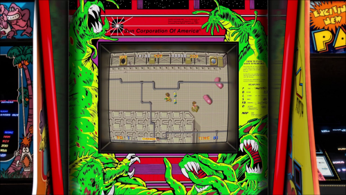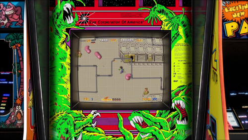 Here's a realistic Arcade Bezel for the game Pepper II using the MegaBezel Reflective Shader for Retroarch.