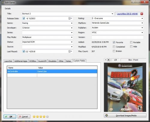 For the games you want to display this icon, add a custom field in LB for that game called "AoController". The value of the custom field should be one of the values from the file Ao.Bigbox.Themer.vX_X.dll.config in the theme's plugins folder (this is the plugins configuration file). For example, put field Name = "AoController" and Value "GameCube" (or you could input "Nintendo GameCube", "Nintendo GC", or "GC") in the game's Custom Fields tab of the edit dialog (this will map to the banner icon png for NINTENDO_GAMECUBE which is bundled in the themer dll). You can do bulk edits for games so you don't have to open up this dialog for each and every game. <!-- META: GAME CONTROLLERS (CUSTOM FIELD: AoController) --> <add key="Game-Controller.GENERIC_ARCADE_STICK" value="Arcade_Stick" /> <add key="Game-Controller.GENERIC_KEYBOARD_MOUSE" value="Keyboard_Mouse,Keyboard" /> <add key="Game-Controller.GENERIC_LIGHT_GUN" value="Light_Gun,Lightgun" /> <add key="Game-Controller.LOGITECH_F310" value="Logitech_F310,F310" /> <add key="Game-Controller.LOGITECH_F710" value="Logitech_F710,F710" /> <add key="Game-Controller.MICROSOFT_XBOX_ONE" value="Microsoft_Xbox_One,Xbox_One" /> <add key="Game-Controller.NINTENDO_64" value="Nintendo_64" /> <add key="Game-Controller.NINTENDO_GAMECUBE" value="Nintendo_GameCube,Nintendo_GC,GameCube,GC" /> <add key="Game-Controller.NINTENDO_GAMECUBE_WB" value="Nintendo_WaveBird,WaveBird" /> <add key="Game-Controller.NINTNDO_WIIMOTE" value="Nintendo_WiiMote,WiiMote" /> <add key="Game-Controller.SONY_DUALSHOCK_3" value="Sony_DualShock_3,Sony_DS3,DualShock_3,DS3" /> <add key="Game-Controller.SONY_DUALSHOCK_4" value="Sony_DualShock_4,Sony_DS4,DualShock_4,DS4" />