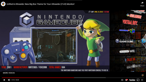 I do have all the videos downloaded and they run fine. What I don't have is the platform, consoles and background picture showing up . The pic below is from the YouTube video of the theme. When I go to my GameCube in BigBox, I don't have the background, link , the GameCube or the video being small in a frame. I just have the video taking up the entire screen. Is that something that can be downloaded and if so where do I add them so they show up?