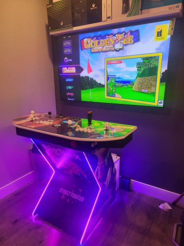 Great looking setup! I need to see if I can program these assignable COB LED lights on the T-Molding. I'm also doing something similar to your cabinet. I'm building a dual screen 50" cabinet. I just got it from the CNC shop. -