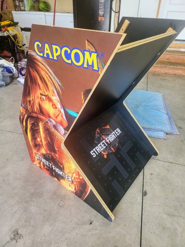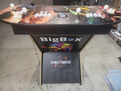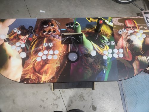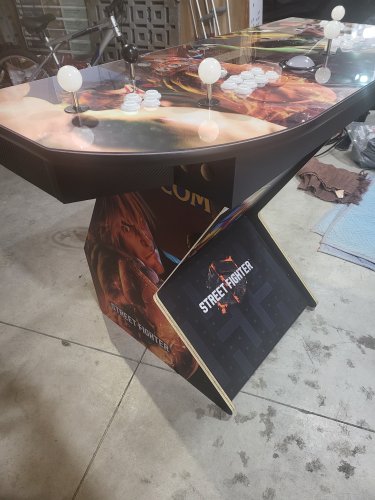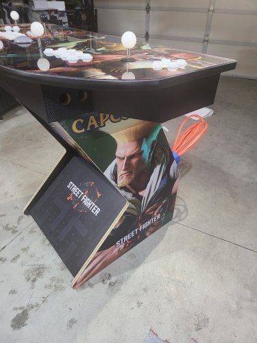 2. I have built many pedestals but really never got to keep one for myself as they all sell pretty quick. This is the build I'm keeping. This is one of two builds. My next build is a dual 50" LCD cabinet. Instead of the small LCD marquee on top, I'm using an additional 50" LCD screen. I already had the cabinet CNC cut and just waiting to get this pedestal built. Pedestal specs: I7-1300 CPU 16GB DDR5 EVGA RTX 3090 65" Samsung Q80 TV Small LCD screen built into Control Panel Electric Ice 2 RGB buttons from Groovy Game Gear x24 Ultimarc RGB Trackball Spinner Sanwa JLF joystick with upgraded springs and gate with hollow shaft for RGB (Player 1 & 2) Zippy joystick with hollow shaft for RGB (Player 3 & 4) and one 4-Way UltraStik 360 FS Flight Stick Ipac Ultimate for RGB function only Pacto 4000T 4 player controller interface. (First time using it) Sinden Light Guns