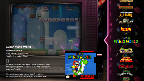 New Retro Big Box View File This is a theme meant to really lean hard on nostalgia. It's inspired by "New Retro Arcade Neon" and uses some of it's assets. As of right now, it consists of 1 view, and the goal is to add more platforms if there is demand for it. The platform images are "banner" images, so using a different view with this will look a little funky. For a little extra immersion, I have Andy Hofle's "Arcade Ambience" mp3 as the background music. Those mp3's can be found here. - http://arcade.hofle.com/ Thanks and I hope you enjoy it! NRBB_Platform_Wheel-TEMPLATE.psd Submitter skainlurmis Submitted 12/21/2016 Category Big Box Custom Themes