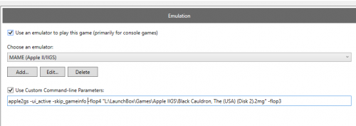 I just discovered the apple2gs -ui_active -flop4 "L:\LaunchBox\Games\Apple IIGS\Black Cauldron, The (USA) (Disk 2).2mg" -flop3 Which allowed the second disk to load on The Black Cauldron, so awesome...I didn't have ui_active before so no tab/UI features were coming up, now I can exit with ESC like I usually can in MAME so that's great! Thanks for the Scroll Lock trick. None of this works for the Regular Apple II eh?