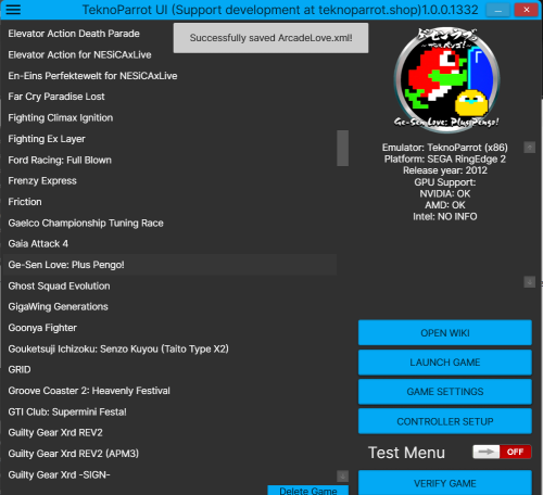 Here's what I found out when getting Yu-Gi-Oh! 5D's Duel Terminal 6 working. The full directory/file path cannot be more than 64 characters and cannot have any "special" characters. If it does it just closes. Once I corrected the file path problem the game loaded fine. to import the game into LaunchBox and it match the GamesDB I created a folder with a name that matches the gamesdb. Inside I created a dummy file that matches TeknoParrot user profile xml.