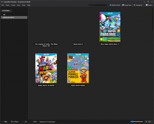 4. Where exactly should videos be added and named in order for them to play when you are displaying a console like "Nintendo Wii" ? I have downloaded "CriticalZone(v1.2)" and "Minimal-AO" In both of them, i added "Nintendo_Wii.mp4" and "Nintendo Wii.mp4" (wasn't sure if it could handle whitepace) inside their folders: "C:\Users\Frederik\LaunchBox\Themes\Minimal-AO\Videos\Platforms" / "C:\Users\Frederik\LaunchBox\Themes\CriticalZone(v1.2)\Videos\Platforms" Inside those folders there is a ReadMe file with the text: "Place your custom platform videos here and they will automatically override the user's existing platform videos when this theme is in use. Name the videos by the name of the platform, such as Nintendo 64.mp4." My platform is named "Nintendo Wii" Excactly. At least that is what it is named when i look in the Games folder. When i have the checkbox checked for "Use Platform Background Videos" it just turns black for all platforms. Have tried switching from Windows Media Player to VLC and restarting the program many times. When i remove the checkmark, it shows images again for all platforms. Am i missing something obvious here? I only god BigBox to see Videos of platforms and gameplay of games when they get hovered