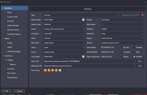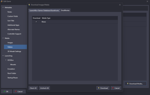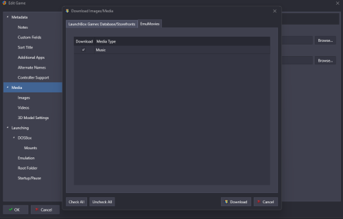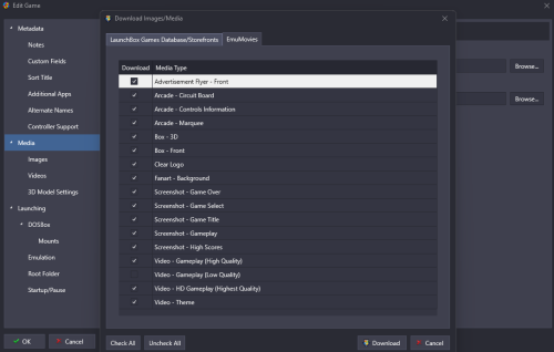Hey thanks for reply. The problem is that i can't select anything for some games, as you can see from screenshot i posted above, the only option that i have is music. I redid the whole import procedure in a fresh LB setup and only 122 of 240 were successfully scraped from EmuMovies (except the music). I have this problem only on Arcade games, other platforms works as expected so my account is working fine i guess, also if i use EmuMovies Sync app, i can find all the media of my MAME library. JoeViking245 seems to have the same problem as mine, Outrun was only an example, a lot of other games have the same issue (at least for me). I'm just guessing, could there be a problem between LaunchBox and EmuMovies regarding arcade games? It would be helpful if someone else confirms if they have the same problem or not. -