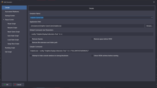 Hi, I want to add sudachi for android into launchbox, I got the data needed for Daijishio and made it possible to launch there, but I got no clue on how to write the start command for launchbox I got this data for sudachi: Start am Argument for sudachi -n org.sudachi.sudachi_emu.ea/org.sudachi.sudachi_emu.activities.EmulationActivity -a android.nfc.action.TECH_DISCOVERED -d {file.uri} file rejex ^(.*)\.(?:nro|nso|nca|xci|nsp)$