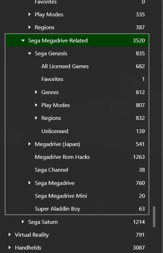 I just deleted a couple of earlier posts and have grouped my feedback here, to tidy up the thread. The below points/bugs all relate to the new platform details pane: I don't seem able to add videos to playlists - I can add them in the edit playlist window, but when I click OK, the video doesn't appear where it should. It's still there if I go back into the edit window. I can add videos to platforms no problem. I don't seem able to delete some platform images, either when deleting from the carousel or when deleting from the edit platform window. The images just remain. This doesn't apply to all platform images, just some. I noticed it when trying to delete the banners. These same banners would also apply to the playlist's parent platform - I don't know if that is part of the issue. Being able to add platform/playlist/category images is great. Could the image types be expanded to include box, controller, manual and advert? Or alternatively allow the user to add custom image types? Having custom data fields for platforms, just like we have for games, would be very useful. And relating to the platform tree: When using the keyboard to navigate the platform tree, the selected parent node and all child nodes are grouped together in a box, as per the screenshot below. This is great as it makes things much clearer and easier to navigate. This doesn't seem to happen when selecting with the mouse however; could we have it appear when using the mouse as well?