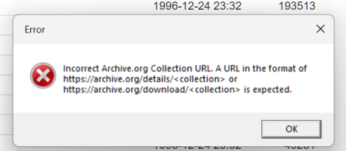 I can't seem to get this to work; when I paste the Archive URL, I get this: The address of the collection looks like this: <Removed Link> It does work when I use this link: <Removed Link> But that seems to be an out-of-date set. -