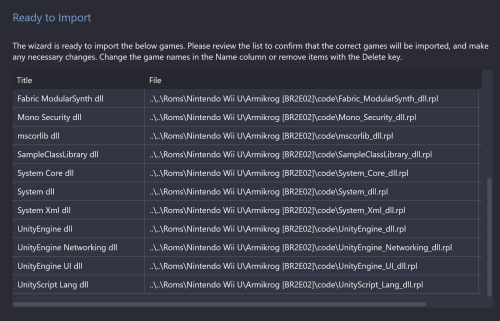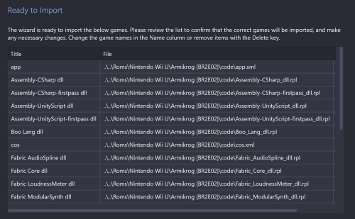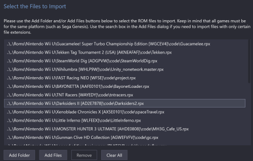 @bundangdon Well, I can gladly say that the workaround worked, so thank you very much. What I ended up on doing is importing a random .xml file so that the platform could be created, which appeared to be sufficient enough for the tool you brought to my attention. With that I was able to import the rest of my game list. I am very grateful for this. Still it is very much a strange thing that the import process won't recognize .rpx files. If anybody else sees this thread and has an ideas I would be very interested. Thank you again bundangdon, the most important piece of the puzzle has been solved.