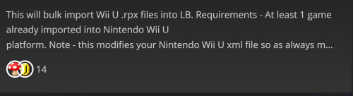 Thank you Bundangdon for your thoughtful response. I'll certainly take a look at the tool. In giving it a surface glance over there is one thing that I fear will get in my way. At this point, I have not been able to successfully import one game- as the install wizard, for whatever reason is just not wanting to recognize .rpx files. But, I'll try experimenting and report back. Thank you again for your response.