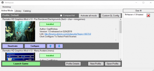 14. Hey! I just bought the steam version of FF7 since the Remako mod just got updated to 1.0, it looks amazing! If you're interested https://captrobau.blogspot.com/2019/05/remako-mod-version-10-released.html However, to use most mods with FF7 you have to launch the game through an application called 7th Heaven. It looks like this. So for now I've mapped FF7 in LB to 7thHeaven.exe That Launch Game button doesn't seem to be mapped to any hotkey afaik, but you guys are very creative here so I thought I'd ask if anyone has a clue how to launch this directly, it's not exactly couch firendly as it is now. Cheers!