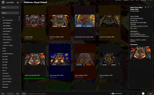 Visual Pinball doesn't need anything special to add it to Launchbox... The command-line parameters are: -minimized /exit /play