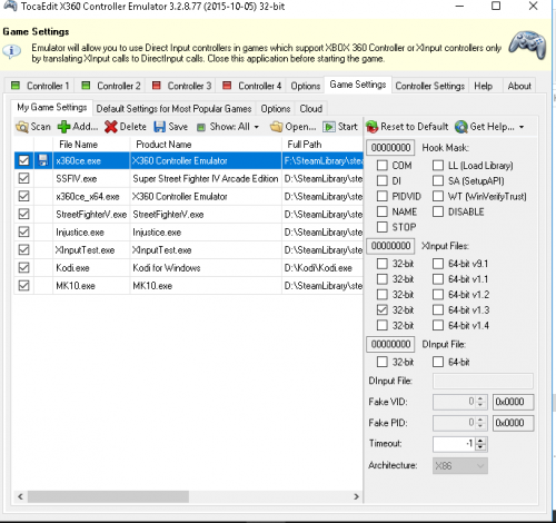 You don’t need a special config. Just copy the x360ce files into the steam games executable directory and x360 gets called as the steam game starts. See attached example of sfv directory. Each steam game may need a slightly different x360ce config but there are plenty of resources that can be found with a google search. I personally use rocketlauncher to fire up my games/roms. This also starts vjoy for the specific games that require it. This is optional as vjoy can be started a windows startup also.