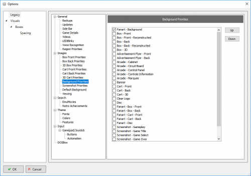 Clear logos in the background look awful. Change it to display fanart only. That way you'll see full-blown artwork from the selected game in the background instead of a tiny logo. I don't know why this isn't the default. Here's a screenshot of the setting you need to change: Uncheck all but "Fanart - Background", that way. if no fanart is found, the default of that game's platform will be used.