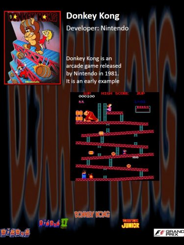 On second thought, let's move the arcade logo to the bottom row and move the description text to the upper left where it's darker and easier to read. -