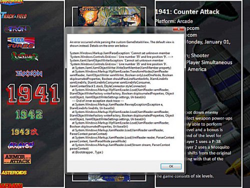 Forget it, it was an error in GameDetailsView.xaml that I edited earlier on. When I deleted it and brought back the original, the error msg went away. Ok, one last question. Since I want a vertical theme, I need to move frames around. So let's take your superman screenshot here. How would go to rotate every frames to the left so that the clear logos on the game list on the left now appears as the bottom row. I guess now the game wheel would become a row (ex:row #3) instead of column #1 or something like that. Am I getting warmer here? :-D -
