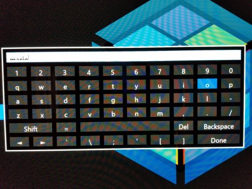 In this photo, I'm using the search function in BigBox. You'll notice the characters are not aligned with the buttons of the onscreen keyboard and the word "mario" is displayed too low to be legible.