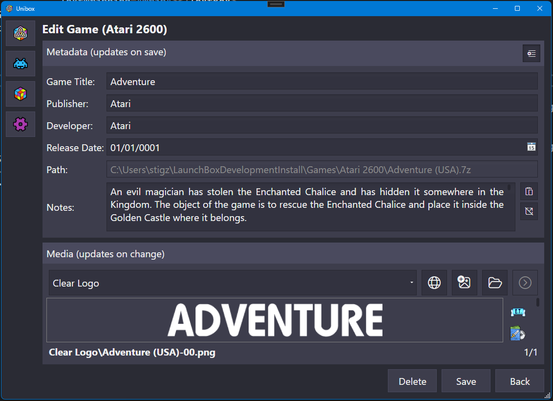New Release: 0.9.13 - Beta (Still - until someone lets me know if it's working on their machine or not!) New features: Edit Game metadata and media on the fly without needing to spark up launchbox. Changes apply immediately in both Launchbox and BigBox Shows all present media for a game and allows you to edit or upload a primary file for each media type (images, videos, music, manuals). One click for automatic websearch on Platform, game name and media type. Usage scenario - you're playing Battlezone on BigBox on your couch, but can't see the manual in BigBox. Just pick up your tablet, click the websearch option, download the manual and add it to BigBox from unibox in one click. Done. You can also use it as a media browser - letting you look at things like the manual whilst the game is playing. Super handy... Have designed this to be windows tablet friendly, but works equally well in desktop mode. Here's how it looks on tablet: File link in original post.