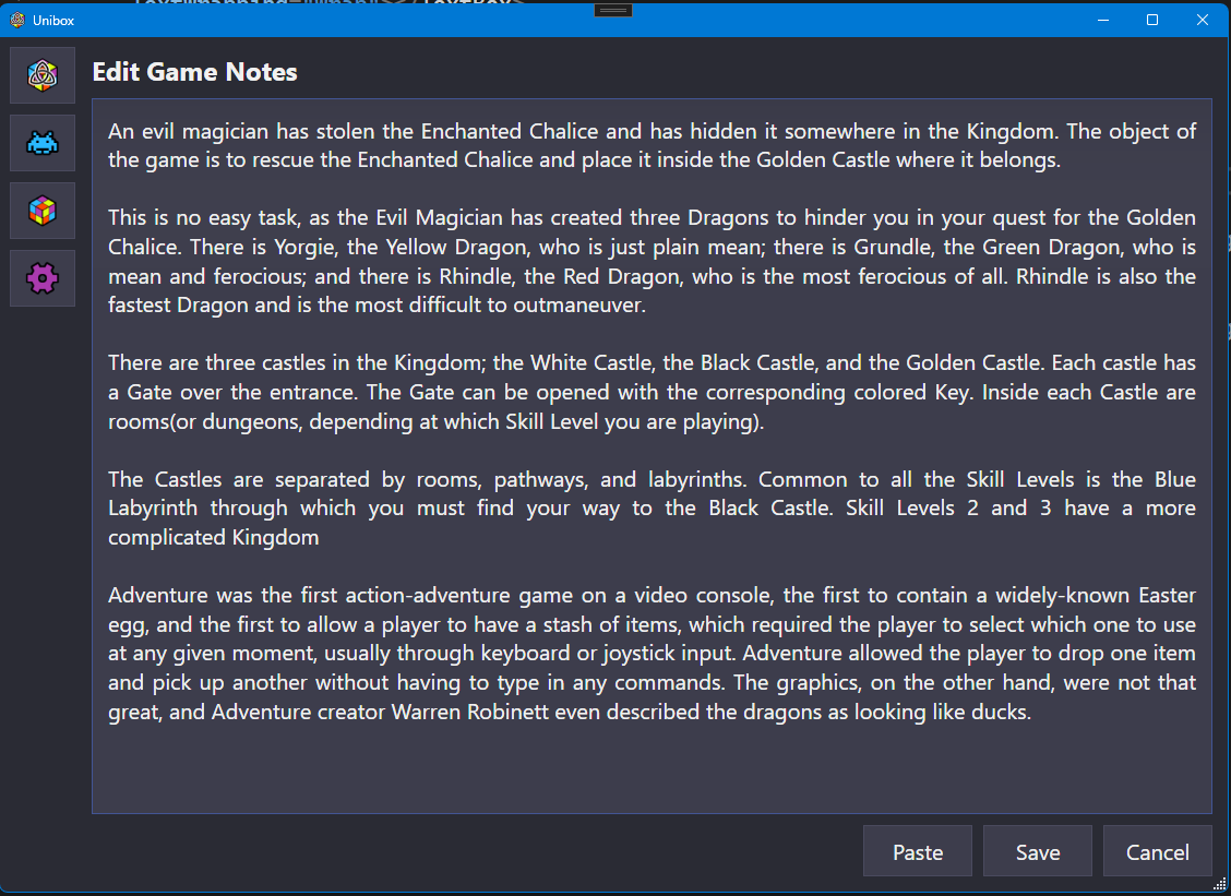 V1.1.0 - "Bootle" New Feature: - Game notes: added paste from clipboard option and separate edit page for Notes.