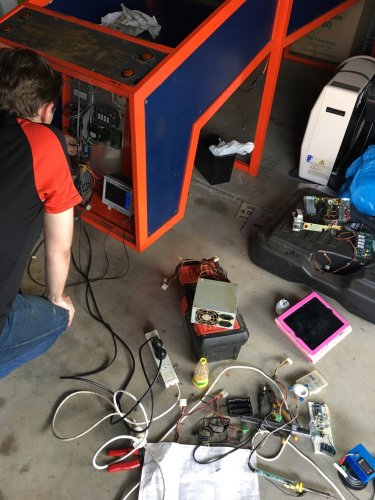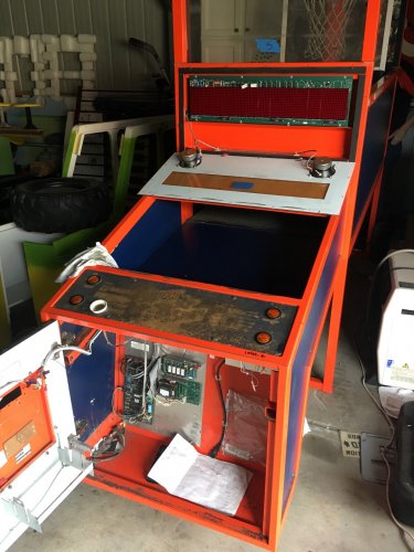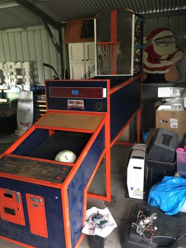 So I picked up this Skee-ball Super Shot game ridiculously cheap.... not working, and it's had a hard life - but I love basketball and gaming projects so I got my electronics mate around and we started going through it with a fine tooth comb. All in all it's pretty much rooted unless I start swapping parts with another identical machine which is near impossible where I live. So we're just going build a whole new game! The plan so far is to replace everything except the motor with an Arduino and other boards (including a new DMD) and then custom write a new game and rules! He's taking on the electronics build while I will be refurbishing the cabinet with a fresh black/white/blue/red Team USA / Dream Team theme. We're only at the initial strip down and planning stage, but I thought I'd make a post and get peoples opinions and show progress shots as we go along.