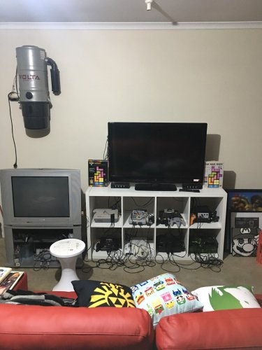 Hey guys, new to the community and loving it Thought I would show off my games room and machines! First of all, here is my HyperSpin arcade... built about 5 years ago and rarely updated these days... Then I've got my 1992 Data East Jurassic Park pinball... both of these things live inside the house because my wife is amazingly awesome about all my gaming stuff (despite not being a gamer herself). Then there's the games room (not including modern consoles like the Nintendo Switch and the XBOX1... they live inside as well). I actually sold off about 1/3 of my collection as I was in a much smaller house at the time and bought Everdrives for all the consoles I could, so anything from NES/SNES/N64/SMS/Mega Drive (I'm Aussie) that wasn't AAA or my own from childhood got sold. I love emulation and am forever building another 'game machine' in one way or another.. but I love collecting as well. Anyone else got some game rooms to show off? p.s. For anyone as mental about Zelda as I am... I made this walkthrough for a BOTW pre-release play (Which I won!)