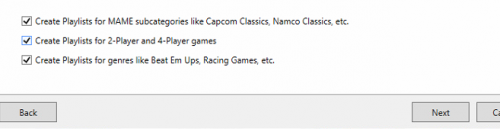 9. The wizard has a few options to check/uncheck in relation to those playlists. Unfortunately those "classics" arcade board playlists are in the same check spot as the other arcade board system playlists. So you cannot exclude them outright without affecting things like CPS, Cave, Sega M2, and so on. Well the dev put those all under the Arcade category since they are all arcade playlists. If you do not want them there you can edit each of them and change the parent location to move it to a different category. If you want to propose a feature to allow more fine tuned importing of these playlists use the "Request a Feature" link located at the top of the forum under the "Help & Support" tab. If you do, be sure to come back to the forum and link that ticket to help drive votes for it.