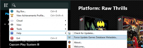 Left hand drop down menu of LaunchBox. Under the "Help" option there is an item to force the update.