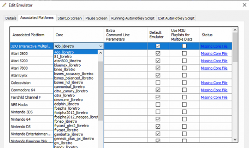 Retroarch is easy to set up. No need to avoid it. First thing to always determine, do your games work if you run them directly in Retroach? 1: If you are using Retroarch you need to call the emulator Retroarch or you will not get the correct Associated Platform screen. So change the emulator name from Neo Geo to Retroarch. 2: Once you fix that your Associate Platforms screen will look like below. In the associated platforms team you no longer enter the core command line you simply click to drop down box and select the core. 3: Always make sure the name you have showing for the platform name in LaunchBox you enter that name exactly in the Associate Platforms tab. So if your games are in the platform SNK Neo Geo MVS then the associate platforms tab needs to show exactly SNK Neo Neo MVS (these cannot differ from each other). If your games are in the Neo Geo platform you enter Neo Geo in the associated platforms tab. Mame Set-up: If you want to use Mame it is just as simple as Retroarch. 1. Open Mame and in the UI add the directory path to your roms location. 2. Make sure you have the correct bios file(s) as well. The bios goes in the roms folder or anywhere you want as long as you add the folder path to Mame. 3. Test the games in mame to make sure they work. 3. Add Mame as an emulator to LaunchBox (If you do not already have it - If you do just go to step 4). 4. In LB Edit the Associated Platforms tab for Mame and add the exact name of your NeoGeo platform. 5. Group select all your Neo Geo games and edit them changing the emulator to Mame since you already have them pointing to Retroarch.