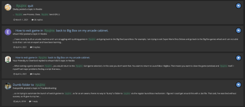 Unable to exit Ryujinx (Switch) emulator in BigBox with hotkeysRetro808 replied to odkmo's topic in Troubleshooting Search "Ryujinx" using the search function. I believe there are about 3-4 topics on this. Here are 2 that appear early in the search.