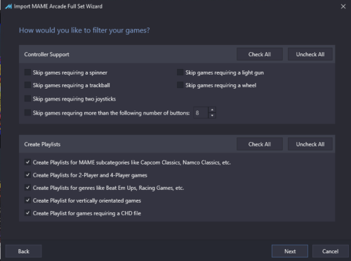 Yes, when you import Mame roms LB gives you the option to make supporting arcade playlists. It will create separate playlists for the different arcade boards like Cave, Sega ST-V, SNK Neo Geo MVS, and others. It is the first item in the "Create Playlist" category in the pic. -