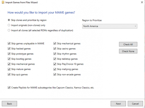 Maybe when running the media download wizard for a game that options is applying the Arcade platform import rom default setting for it to skip "Non-Arcade Games" so when running a scan through the import wizard versus the edit screen it is possible it applies those defaults (snap below is from the Arcade import screens). I only mention this because if you import that game from a fresh import LB will not find it unless that option is unchecked. The edit screen option is searching the game name against the Games DB and allows you to pick the correct name so it is possibly not applying any of the import wizard skip options.