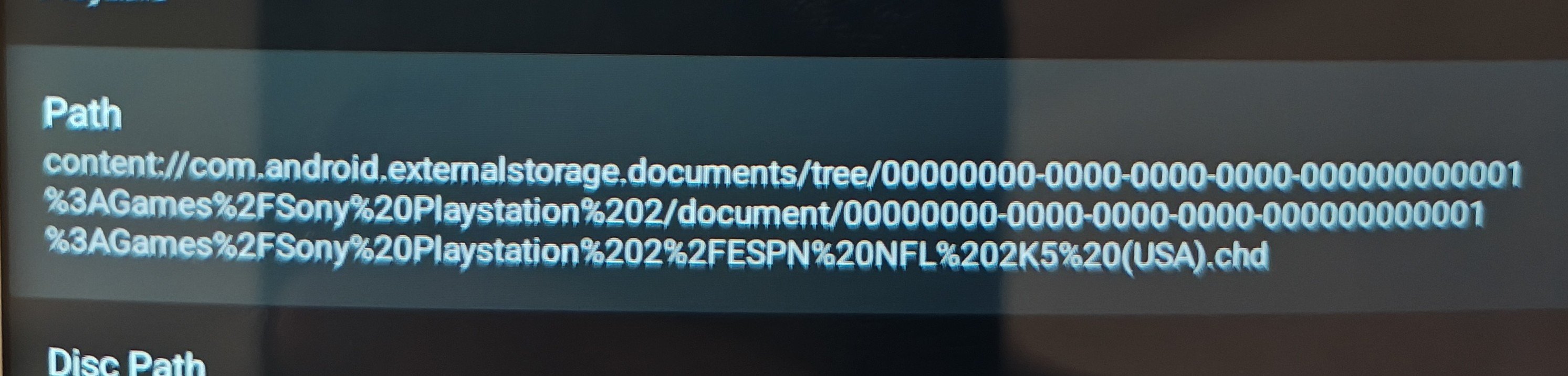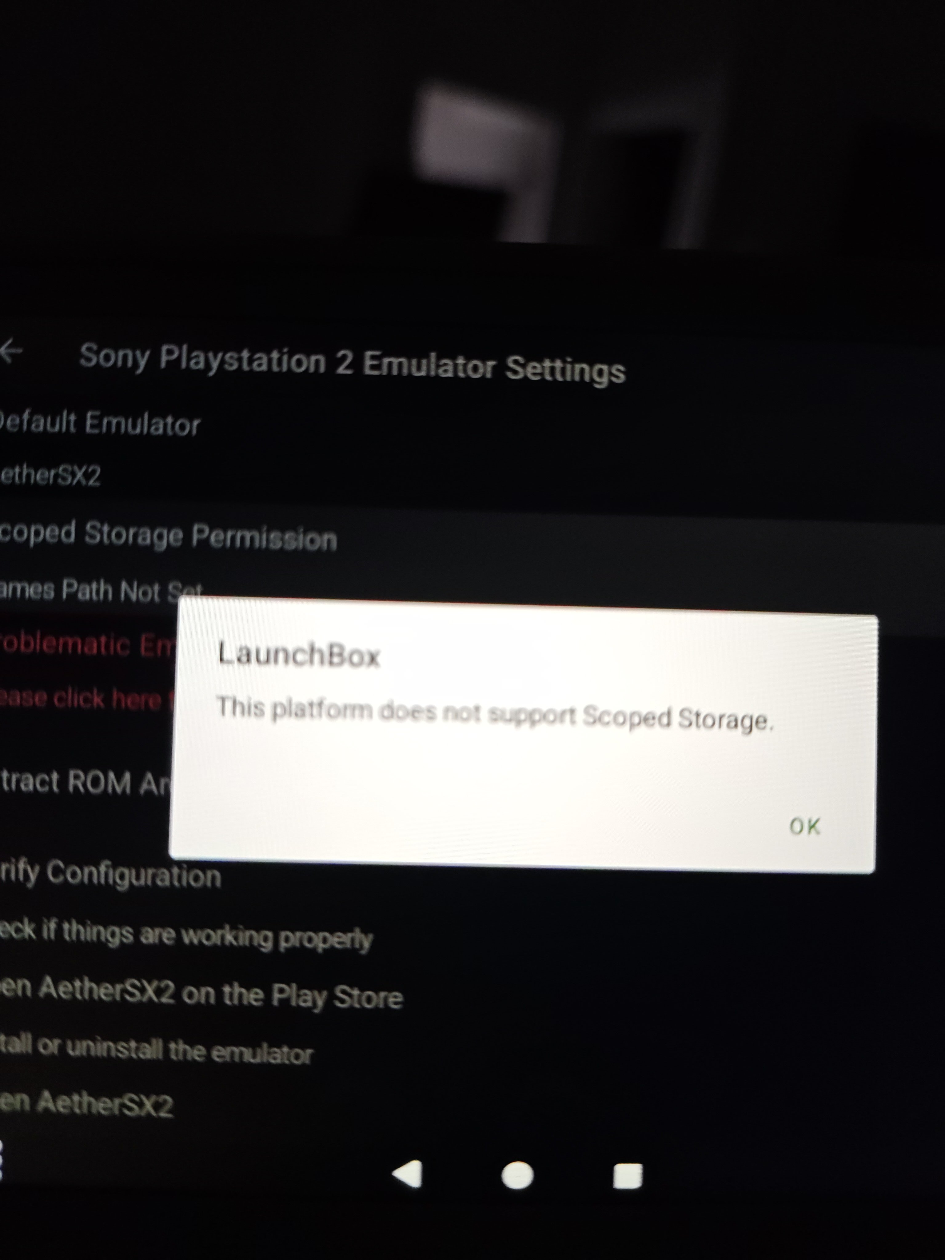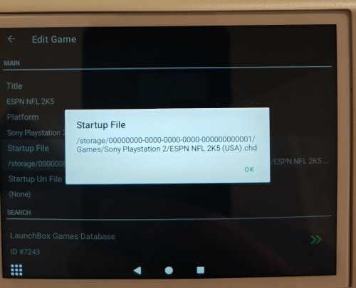 EDIT: The problem seems to be related to launchbox being set as the default home app. After a period of time, the scoped storage process seems to fail and it does not pass the scoped storage over. Switching to another launcher seems to solve this. I'm at a loss but sharing what I'm experiencing. Running into an issue where no matter what I do, I cannot get games to open in NetherSX2 (PS2 emulator based on AetherSX2) when selected in Launchbox. I have followed steps on here about making sure there's a games folder scanned in NetherSX2 and confirmed games when run in the app work perfectly fine. The games are stored on an SD card and when I look at the file paths, I see they are captured differently in NetherSX2 versus Launchbox (Nether uses things like percent signs to capture spaces, etc). Could this be the source of the issue? I've shared screenshots to help illustrate. Troubleshooting steps I've taken: - tried setting scoped storage (I get an error in Launchbox saying this platform does not allow for scoped storage) - confirm if games open directly in NetherSX2 (they do open fine) - deleted and readded the games folder in netherSX2 - tried completely removing the games folder in NetherSX2 and not reading the folder - deleted and reinstalled NetherSX2 - deleted and reinstalled the platform in Launchbox - rebooted device