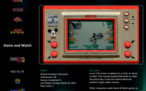 I'm using the Game & Watch image package for the games, but I wanted to add some pazzaz to the system itself. I created the attached clear logo for the system, but even though I add it to the system and mark it as the clear logo, I still only see the system name in the default font when I enter Big Box Anyone knows what I'm missing? maybe the image needs something changed like resolution or somthing? thanks! (sorry if I did something not by the rules in this post. it's my first one :-))