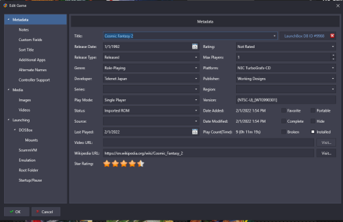 Ok, so when I did it this time it asked specifically for the syscard3.PCE file! I made a copy of my Japanese one and renamed it to syscard3.PCE I will honestly admit I don't remember it doing that on Monday... and I did update to the latest Launchbox today. AND NOW THAT SUMBITCH RUNS! So is there a way to point it to the syscard3.PCE file if you fucked it up (or missed it) before? -