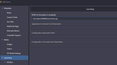 You re-import the full set. Note you will lose any customization as re-import uses the MAME data for things like genre and player type as they will revert to MAME way of things. If only interested in a specific game in the update you can drag and drop the ROM into LB Arcade window and install that way and that way doesn't mess with any customization. LB isn't an emulator, so there is nothing to enable. LB will launch the emulator with whatever settings you have setup. For regular MAME those settings are determined via MAME.INI (or command line). There is really no reason (in my view) to use MAMEUI if using LB as front-end. Don't move the CHD folders as that is way needs to be setup with folder name and CHD inside that folder. In LB it should point to the the kinst.zip file. Your CHD should then be here using what you described: ROMS\CHDS\kinst\kinst.chd More than likely if not launching you have a path/setting issue. Does it work with MAME directly? If you try launching from command window (outside LB) what error does it give you?) Make sure your path to CHDs is specified in the MAME.ini for rompath (in your case would be called "CHDs"). For regular MAME you set the settings such as bi-linear filter, HSL and GSL here: