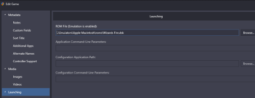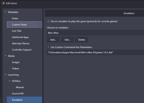 You are in essence using the command line interface for RA/LB. For command line and MiniVmac in Windows you have to pass each disk path to MiniVMac at launch in quotes separated by a space. So outside of LB, a command to launch two disks looks like this (your paths will vary). If you are not in the minvmac exe folder, you also have to put full path to EXE as well from CMD line: "Mini vMac II.exe" "G:\Emulators\Apple Macintosh\Mini vMac II\System 7.0.1.dsk" "G:\Emulators\Apple Macintosh\roms\Wizards Fire.dsk" In LB it is same basic logic only LB already has path to emulator and has full path to one disk if imported already. I don't use RA for this emulator so my example below using non-RA Mini vMac executable directly. But will be similar logic for RA as well. LB is pointing to the Wizards Fire DSK in the launching line. Then in custom command line under emulation you can add in the other disk explicitly using full path and quotes. You could also add it to the emulator command directly but then that means it will always use whatever disk you reference with that emulator. If third disk you would add with space and path similarly. Ultimately, I find it is just as easy to use the miniVmac drag and drop interface in most cases or using a HD image versus floppy. Unfortunately, LB doesn't have a variable for Additional Apps (like %ROMFILE%), so you are stuck with always naming additional disks explicitly. This is the same for other systems like Apple II.