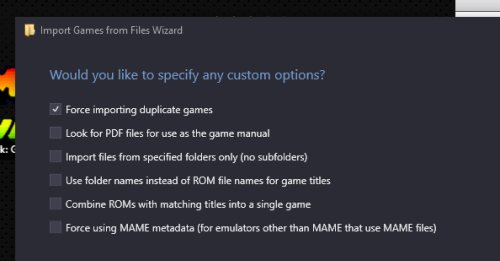 MAME - will re-importing romset change anything?sundogak replied to Surfdeign's topic in Troubleshooting I assume you are speaking to the MAME Arcade Full Set import feature. If you just do an import again and don't remove any of the existing files (i.e., delete, reimport) then anything that is LB specific data will remain such as hidden, broken, favorites and playlists. However, anything you customized that is part of the MAME XML metadata (pulled from the MAME.EXE) such as game name, description, genre, play mode, etc will be overwritten back to whatever MAME thinks it should be (Genre and Play Mode in particular to watch for). Additionally, if you do this way, if during a previous import you had included Casino games and then subsequently checked to exclude, the casino games from the first import will remain (i.e., importer won't delete it). This trick is useful if you just wanted a few from a type but don't want to prune that category again. Best before doing import is to make data backup of LB XML data files. Go to Tools, File Management, Create Data Backup and then try import. Then do a check of things you wanted to carry over. You can always restore backup if something isn't working as expected.