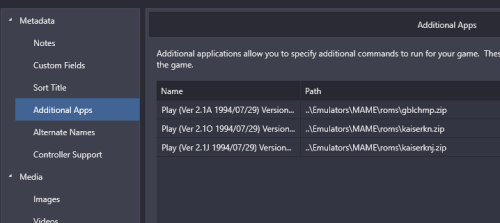 Specific Rom Wont Import to Launchbox/Bigboxsundogak replied to johnnydlux's topic in Troubleshooting Double check you don't have a game called Global Champion. If did the North America import, then that is what is set as priority with the Kaiser Knuckles as alternate roms: This site is good to root out clones/names and if the game is running or not. When you drag/dropped the ROM if you check the "Force Importing Duplicate Games" before the next MAME Import Game selection window it would force import (but as a dupe). If you check that and see it pop up in last screen just before import, then that indicates it has an alternate name and already imported. The site linked is good reference to see what the North America/Japan names differences since not always obvious.