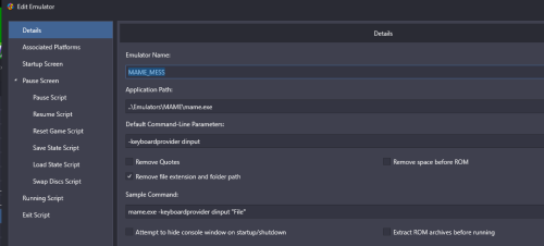Assuming a standard MAME setup (the MAME folder can be called whatever you want but is MAME here): ..\MAME\MAME.EXE ..\MAME\CHDS\ ..\MAME\ROMS\ ..\MAME\SAMPLES\ ..\MAME\SOFTWARE\ ..\MAME\HASH\ You then should verify your MAME.INI is set accordingly. rompath roms;chds;software samplepath samples The paths in the MAME.INI are relative to the MAME.EXE and the above assumes your MAME.EXE is in same root folder as CHDS, ROMS, etc. You don't need to do anything with the BIOS or CHDS import wise as long as your MAME.INI is set correctly to match your folder paths. LB will figure out what to do if you use Tools, Import, MAME Arcade Full Set feature and point it to your ROMS folder for import. Software Sets Now MAME Software (non-Arcade) is different issue in that currently LB does not natively import these easily via a wizard like the arcade import feature. However, a user has made a very useful plugin to do some of the work. It is located here Even with the plugin it isn't as straightforward as the arcade MAME games to get working in that you have to tell MAME commands specific to that software platform. Ther are several threads on the forums that go into more detail (like Phillips CD-i). But in general, it is usually easiest to setup a duplicate emulator of MAME just for software if you are going to use ROMS in the MAME\Software folder since it will have different settings than for MAME arcade. I called mine "MAME_MESS" but you can call whatever. Unlike arcade setup, you will need to check the "Remove File Extension and Folder Path" as shown below if running properly named ROM zips in the MAME Software folder. If using ROMS in the Software folder, it is also critical that you have updated the HASH folder data to match your MAME.EXE version (comes with the full MAME install) and that your MAME.ini points correctly to the folder like: hashpath hash The reason is that MAME uses the XML files in the hash folder to "figure out" via checksums of the zip file how to load the software and allows for a bit simpler command lines in LB (don't have to use media flag like -cart). For this to work properly, you need to make sure you have a properly named software set and in zips that match what MAME expects (see below). Then in your duped MAME emulator settings you set the default command lines so that MAME knows how to run each platform. A few I have are shown below but there are many others. Typically, the first part of the default command is the same name as system name in the software folder (example a2600 is the Atari 2600). With all that, MAME isn't always the best emulator and/or easiest to setup for many systems, so although you CAN run them, it is usually easier to run in something like RetroArch if there is a core. This is particularly the case for most cartridge based systems.