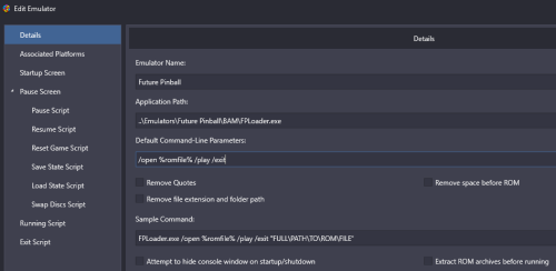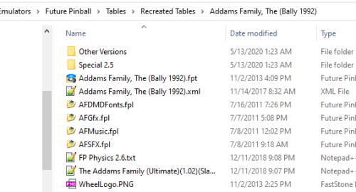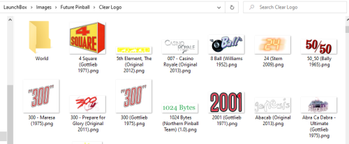 Installer: Use this link to install FP and BAM together in one easy installer base. Click on the 2-in-1 button on right. BAM: adds additional features and capabilities to FP (FPLoader.exe). The base FP program is no longer supported/developed (closed sourced) so BAM is basically a patch to EXE to add features that cannot be added into main EXE. For any newer table, most require BAM features or table will not run. If you run a cabinet, it also has additional features you will need. BAM also adjusts the ball "physics" which go into later below. Note: if using BAM you will not be able to use LB Pause Screen Feature. LB Emulator Settings: Once you ran the installer, then you can associate Future Pinball tables to the Emulator (FP) by the following commands in LB (ignore comments on "FPLauncher" that was old way to integrate in LB, below is simpler method): /open %romfile% /play /exit The emulator in LB should point to the FPLoader.exe if using BAM (not the Future Pinball.exe) Import Tables: To import the FP tables you can use LB import feature and have it import *.fpt (extension for all FP tables, type that into LB window when pointing to root tables folder for import). Do not try to import the FPL and VBS stuff into LB. The FPT file is the main table. Folders Can Be Used: Note contrary to the many guides (including below) you can place your FPT (tables), FPL (media), and VBS (scripts) into their own folder and it is MUCH easier to keep things organized. Every guide I have seen will tell you the world will stop revolving if you do this but out of the 800 FP tables I have, none have issues. The key is if going folder route that it is one table per folder (and all its parts). It is a confusing mess if you do "the right way" since updates to tables are pain to keep track of all the associated files (FPL particularly). Example with my setup where tables and all associated files in separate folders: Guide: TerryRed has a comprehensive weblink video guide located here along with a PDF (link) on setup. It is VERY geared towards cabinets which is much more complex...so don't get overwhelmed (or skip) things from that perspective. I also wouldn't install his settings unless have cabinet (and even then, wouldn't personally until familiar with what it is doing). Most guides at Pinball sites will not even mention LB (Pinup Popper or PinballX are typical ones) so if questions specific to LB then best to ask here. Media: This is a headache. Mostly because there is no standard naming convention for Pinball Media/Tables and for most part LB database is non-existent "use wise" for Pinball because it plunks all the major emulators (Visual Pinball, Future Pinball, FX3) into one big bucket). So, you have to do manually in most cases. You will find some media in LB DB but nothing consistent. In most cases, look for "media packs" such as those in the LB Download Forum or at larger Pinball sites such as Gameex, VPUniverse, and VPForum. Clear logos tend to be the easiest to find since there are numerous packs of logos out there. This is where naming your table consistently will help immensely within LB. LB will pick up any media either by title or by the "ROM" title (in this case the FPT table file name). If your table name is: Black Knight (Williams 1980).fpt then LB will pick up any media with Black Knight (Williams 1980).png or Black Knight.png (LB ignores anything in brackets). The "mostly" consistent naming standard within Pinball is the table name then the company and year in brackets. But you will find there are NUMEROUS versions, mods, and different author versions of various tables. Media within LB is stored in LaunchBox\Images\Future Pinball folders. Anything you put in those folders such as clear logos that are named the same as your FPT will automatically pick up in LB. Se example below to which many of the non-LB media packs are named: Planning Ahead: For media, planning ahead on how you name things is key or you will wind up having to individually match media within LB through the edit game window. Something to be aware: LB renames media to its format if images are manipulated from within LB edit window so Black Knight (Williams 1980).png becomes Black Knight-01.png. Once image linked to table, not a big issue but is a pain if you are sharing your media pack. Physics: BAM also adds key feature to adjust physics. The original FP didn't have great physics (versus Visual Pinball), so part of BAM was to fix this. Originally for FP you had to have different executables that were "hacked" to get different physics, a major pain. With BAM it uses an XML file with all the physics settings to tell Future Pinball how to run. On newer tables the XML code is built into tables (~2019 forward) so you don't have to worry about "physics". On older "simpler" tables (usually EM) they typically had default physics so no issues there. But for the more advanced tables pre-2019 (or so) physics were adjusted. If you get a table where the ball seems "weird" (floats, or heavy like a rock) or the plunger is heavy (ball doesn't shoot) then likely you have a table with specific set of physics and not the correct XML file. So for example this table below requires Physics 2.6 so I copy the 2.6 XML file from the ..\..\BAM\XML folder and rename it the same as the table. Now that table will run with Physics 2.6. I always put a note in my folder. I didn't do that originally but there is NO easy/consistent way to tell. Vpforums.org download info usually indicates the physics type...but it isn't 100% (but good start). If all sounds too confusing, stick with newer FP tables over last few years since table authors take care of all the messy physics settings within the table. Start Simple: Lastly, the key is start small. Don't worry about physics, or media just get the emulator up and running and LB happy. Install the 2-in-1 pack. Download one or two tables you think are interesting and within last several years to avoid initially dealing w