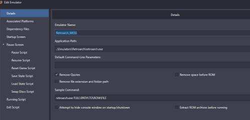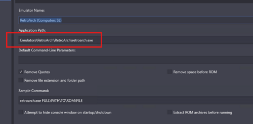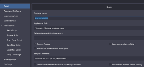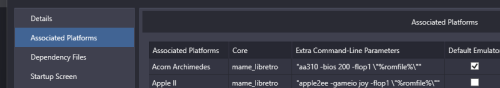 @coliver33 My guess at this point is that spacing in path is causing issues when LB parses command. Particularly because it is double space and likely some escaping issue and LB missing a "space" so from RA view doesn't know what to launch. Although I know you said it works outside of LB, we are now dealing with 4 levels of stuff to deal with 1) LB command, RA, MAME, and MAME Software List all of which have their oddities and make difficult to troubleshoot where things are going wrong. With SL, simple is best on paths. At any rate could try two things to check above with particular focus on that "(Merged)" path being double space. Under your MAME SL level directory make a simple directory name (say software) and copy the ..software\archimedes\3dtanks.zip, point LB to it and see if that works. If so then that double space is issue and likely good to know for future as may cause other glitches. Likely "better" solution. LB added new variables within last several months (which haven't bothered to try as don't mess with RA if works!). The %romfilename% strips out path and extension which for MAME SL is actually the preferred way even within MAME standalone as MAME only needs to know the game name not anything else (as takes from XML/INI data). You also get advantage of MAME using the XML data. If do it this way then SHOULD take care of any spacing issues as you are not sending anything from LB to RA other than file name (no extension or path). As you said RA works fine out side of LB then in theory the double space aspect should not come into play from LB view. "aa310 -bios 200 -flop \"%romfilename%\"" In example above with zip you used it would then look like this to RA incoming: aa310 -bios 200 -flop 3dtanks You keep the RA setup as before as far as check boxes as still need quotes stripped other than what we explicitly put in. I tried this and works as well on my setup with %romfilename% and launches 3dtanks. Note: edited slightly to delete the "-flop1" to "flop" as if using this method the XML will parse to correct drive.