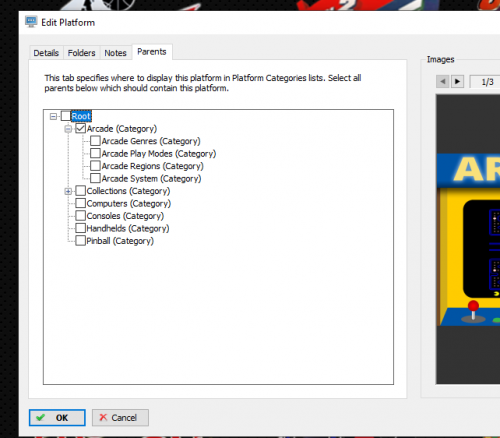 Just right click the MAME/Arcade platform at the left of screen and will bring up this window to generate the playlists post import. Sorry, just reread what you asked and you said you wanted the playlists for subcategories and you tried the right-click. So no, you would need to rerun the importer for that feature as far as I know. 2. No bulk change ability I am aware of in front end. Might be able to edit XML directly, but never did it for this purpose, so cannot give any input there. 3. Edit platform and remove the checkbox for the playlist from the "ROOT" box. Check any others you want on/off.