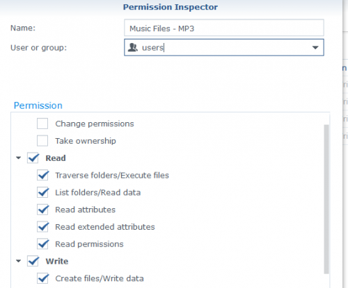 @retroarcadium You might double check that for your user group assigned that they execute permission checked. Sounds like there is read/write but the execute bit is not set. Go to File Station, Properties. File Properties, Permission, Advanced Options, Permission Inspector for the folder you want to check and then select the user group and it will show you if checked like below. Also, under File Station see if the Privilege column has the "X" bit set and what group is assigned.