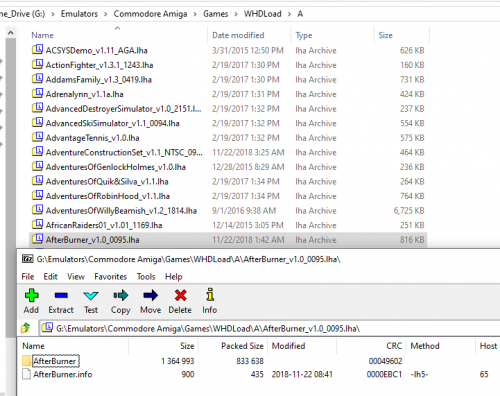 @HansS You have multiple files that are duplicates (anything with (1) info files). So LB will not prune those out if duplicated if told it to pull in *.info files. LB doesn't have enough information in what is named above to match anything. It either needs the file name or the directory name to match (excepting MAME). So LB will be completely confused on what you have in your screenshot. See #2. It appears the set you have in the screen snap is a WHDLoad game set that was unzipped from the source *.lha files. Those are managed differently and will not import directly. See info at FS-UAE site. FS-UAE uses a matching system to compare the games using checksums (very slick). The screen shot below shows a WHDLoad set I have. Notice they are all still zipped (in *.lha extension). If you look inside the zip you see an Info and Folder. Looks to me like these were all unzipped which is why have a zillion *.info files. FS-UAE manages them in compressed form (think like MAME does). See this LB thread on how to take FS-UAE pointer files generated by its launcher to import into LB. Other emulators will be different..... 3. What is referred to above by Lou is an ADF set. That will look like this (see snap below). So those will import as noted above since typically either the name of directory or the name of the game is enough for LB to match. If for some reason they are not, then you are in for a long slog to rename the files to what the game is by title if not using a checksum method like in #2. Ultimately for any import set (excluding MAME) it needs enough of the name in the file to be able to match. I would try and make sure your emulator your are using (wasn't indicated in post) that you can run the files you have outside LB first and then import after you sure your set is working and in correct directory path. Edit. If have a MAME Software set, then the Amiga files are (mostly) in ADF format (with some IPF) within the zip files.