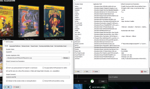 I added the new ScummVM as a separate emulator. If use the pointer files in this thread it will get you 90% there. I didn't do for every version/game but you get the idea. I used EpicFails launcher prior but he would also need to update plugin since his DB internal to the program doesn't pull all the codes for the new games. One advantage (like the internal LB method) is that it works with Pause Screens which is what originally sent me down the path since wanted access to manuals in pause. Pause screens, at least on my setup, never worked if using the batch file method. The other is that this will also work with Retroarch with no changes since pointer files have GameID files in the text file as well.