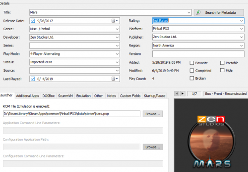 Its a bug with Zen if you have both Mars and Attack from Mars on FX3. At one of the pinball sites noted to do the following: Duplicate the "mars.pxp" Rename the dupe to "Nars.pxp" Then link to the "Nars" file for the "Mars" table within LB the same way you do for other tables. I have done that and launches the correct one.