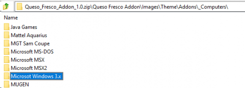 @RetroHumanoid Awesome theme and a massive amount of detail/work, particularly with the new update working with the revised theme system so soon out of the gate. I noticed as I was cruising around all the files after install that the Queso Fresco Addon for Microsoft Windows 3.1.X image directory has a typo in folder name (Microsot). See below screenshot: I don't have any games (yet) in this category so cannot say it impacted my setup. The XAML file references appear to be correct titles.